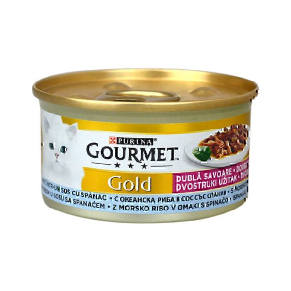 کنسرو غذای گربه گورمت با طعم ماهی و اسفناج Gourmet Gold Fish & Spinach In Gravy وزن ۸۵ گرم