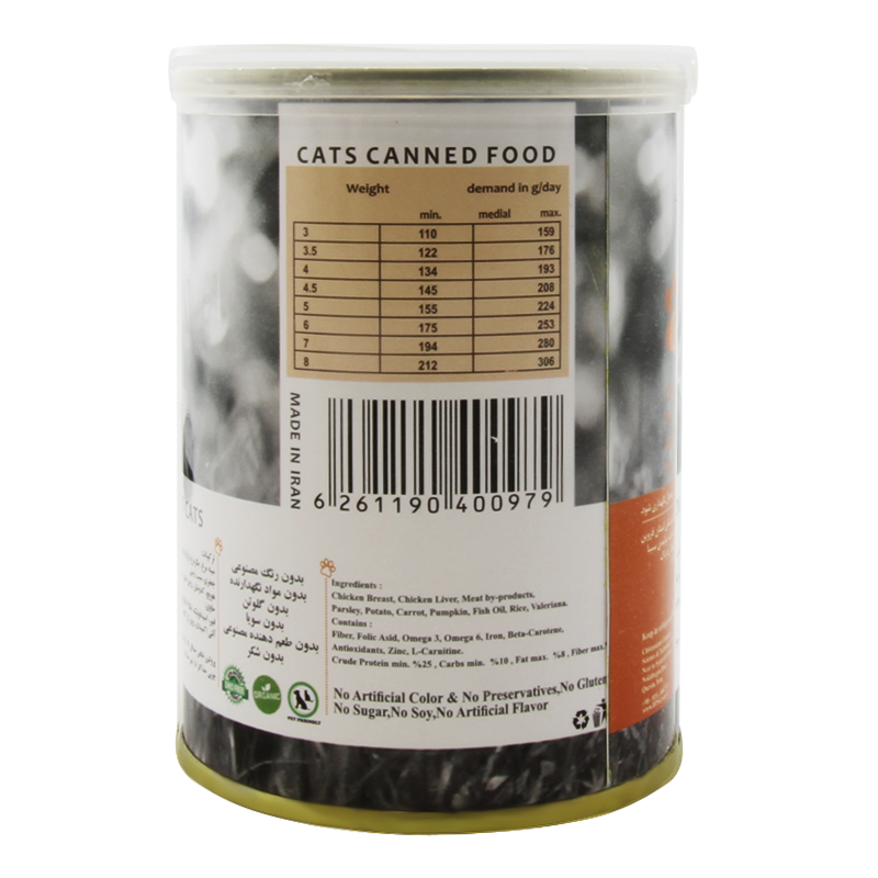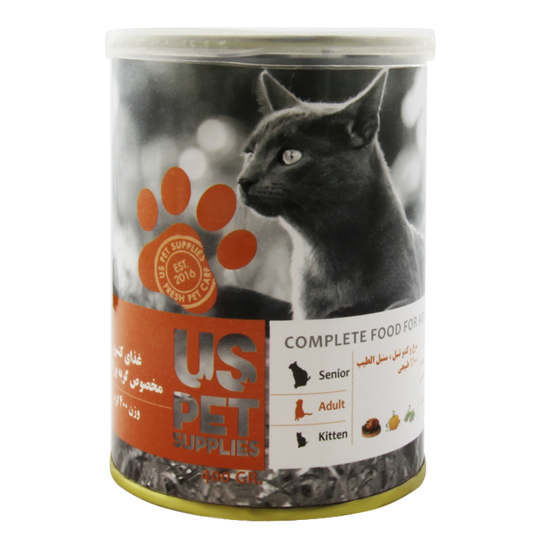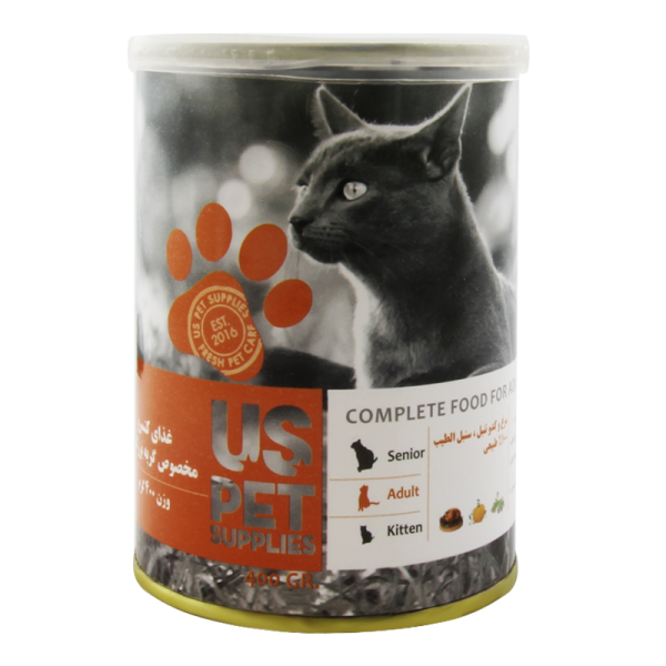 کنسرو غذای گربه یو اس پت با طعم گوشت مرغ و کدوحلوایی و کت نیپ UsPet Canned Food With Chicken & Pumpkin & Valeriana وزن 400 گرم