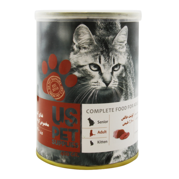 کنسرو غذای گربه یو اس پت با طعم گوشت گاو خالص UsPet Canned Food With Pure Beef وزن 400 گرم