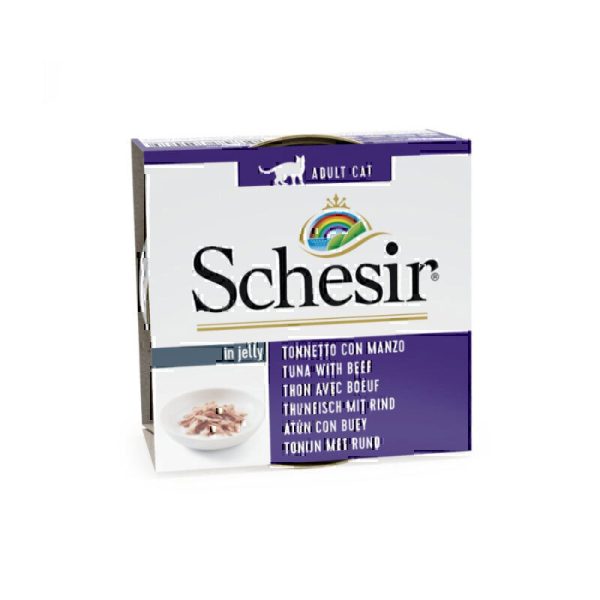 کنسرو غذا گربه شسیر با طعم ماهی تن و گوشت Schesir Tuna & Beef In Jelly وزن 85 گرم