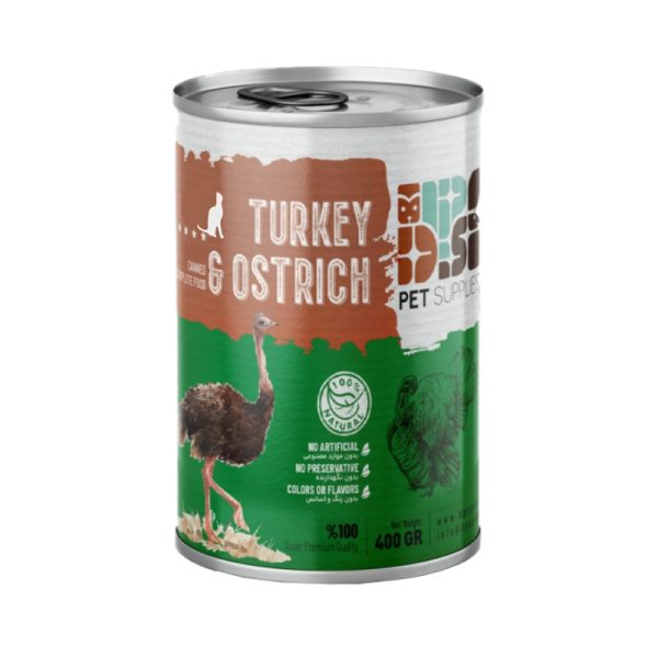 کنسرو گربه دی پی اس نچرال با طعم گوشت بوقلمون و شترمرغ وزن 400 گرم
