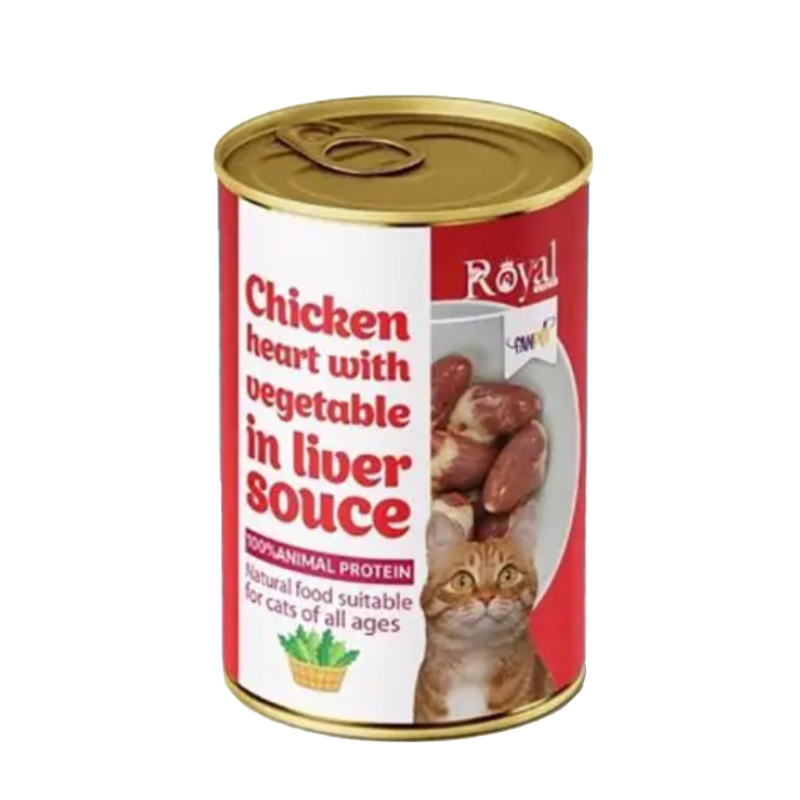 کنسرو گربه رویال کوکو نچرال با طعم دل مرغ و سبزیجات در سس جگر وزن ۳۸۰ گرم