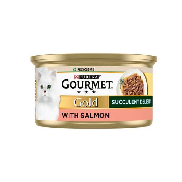 کنسرو گربه گلد گورمت با طعم فیله ماهی سالمون در سس Gourmet Gold With Salmon وزن 85 گرم