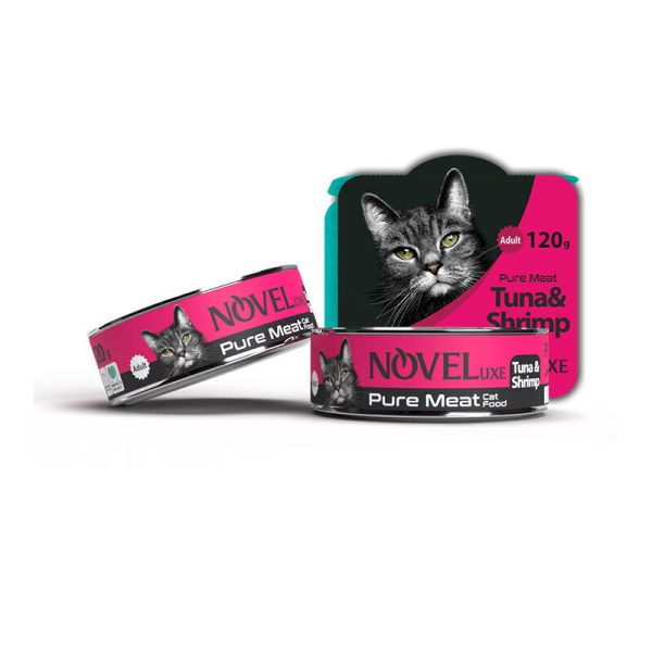 کنسرو گوشت تازه گربه نوول با طعم ماهی تن و میگو Novel Pure Meat With Tuna & Shrimp وزن 120 گرم