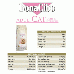 غذای خشک گربه بوناسیبو مدل Adult Light & Sterilised وزن 1 کیلوگرم