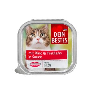 غذای کاسه ای گربه دین بستس با طعم گوشت گاو و بوقلمون در سس Dein Bestes With Beef & Turkey in Sauce وزن 100 گرم