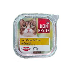 غذای کاسه ای گربه دین بستس با طعم گوشت غاز و اردک در سس Dein Bestes With Goose & Duck in Sauce وزن 100 گرم