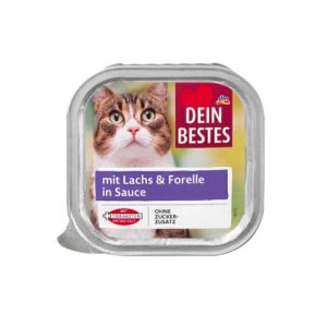 غذای کاسه ای گربه دین بستس با طعم سالمون و قزل آلا در سس Dein Bestes With Salmon & Trout in Sauce وزن 100 گرم