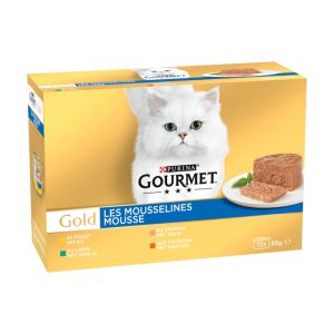 کنسرو غذای پته گربه گورمت در چهار طعم Gourmet Gold Pate بسته 12 عددی