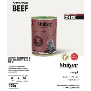 کنسرو غذای گربه با طعم گوشت شایر Shayer Chunky Beef وزن 400 گرم