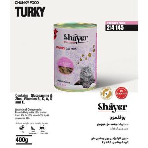 کنسرو غذای گربه با طعم بوقلمون شایر Shayer Chunky Turkey وزن 400 گرم