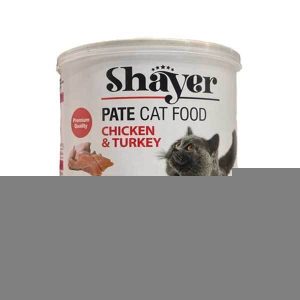 کنسرو غذای گربه با طعم گوشت مرغ و بوقلمون شایر Shayer Premium With Chicken & Turkey وزن 800 گرم